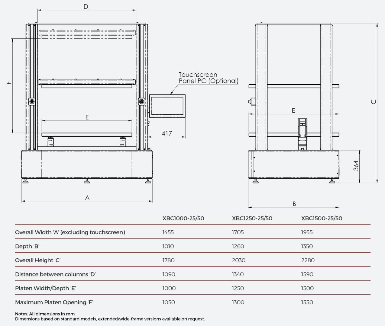 - High stiffness loading frames with precision ground steel guide rods and rigid extruded support columns with T-slots for accessory mounting.